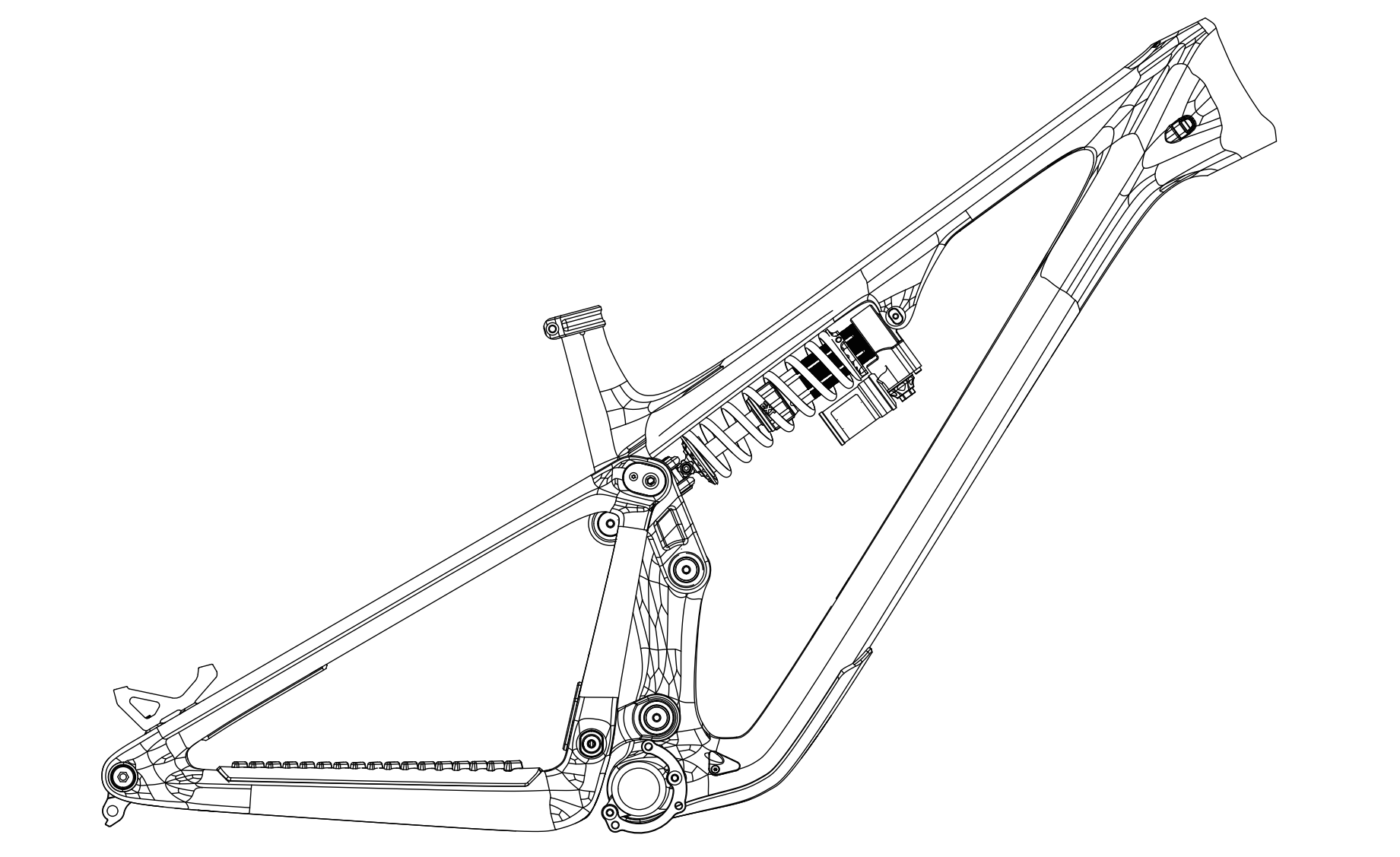 Rama produkowana jest w okolicach Szanghaju i została przetestowana do poziomu Kategorii 5, z kompatybilnością zarówno z widelcami jedno jak i dwupółkowymi. System zawieszenia EVP (virtual pivot) firmy Extention został zaprojektowany tak, aby zapewniać czułość na początku skoku, mocne podparcie w środkowej fazie oraz stabilnosć podczas hamowania. Szczegółowy opis kinematyki EVP znajduje się poniżej.